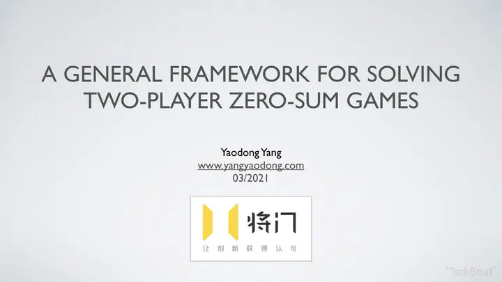 TechBeat 2021: 一个通用零和博弈的求解框架