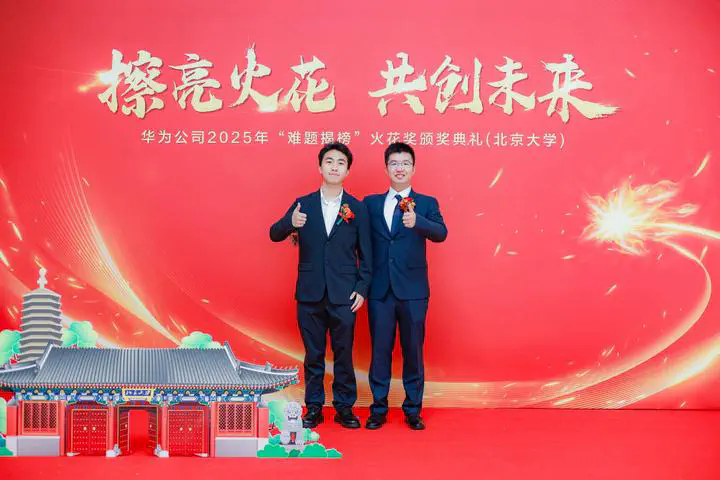 7月8日下午,“擦亮火花,共创未来”华为公司2025年“难题揭榜”火花奖北京大学专场颁奖典礼在北京举行。北京大学副校长朴世龙,华为公司董事、2012实验室总裁查钧,出席典礼并为获奖师生颁奖。火花奖,取“火花碰撞”之意。自2021年11月起,华为公司把产业面临的老大难问题总结提炼为科学问题向社会发布,采用难题揭榜的形式,寻找基础理论扎实、有创新解题思路的人才,同时鼓励高校教师踊跃揭榜,解决真问题,真解决问题。